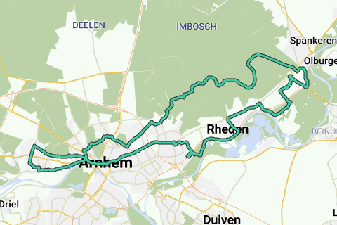 Route vanuit Dieren (knooppunt 23 Hogestraat - Hoflaan) langs de IJssel door Arnhem naar Oosterbeek en over de Veluwezoom terug