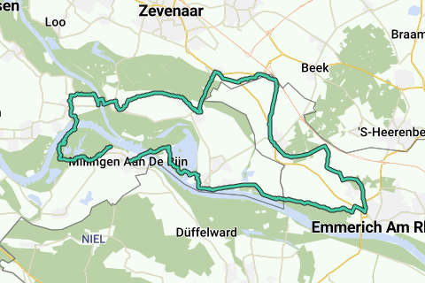 De bekende 3 pontjes met een stukje uitbreiding richting Elten, Duitsland en Tolkamer. Start en einde in Millingen aan de Rijn.