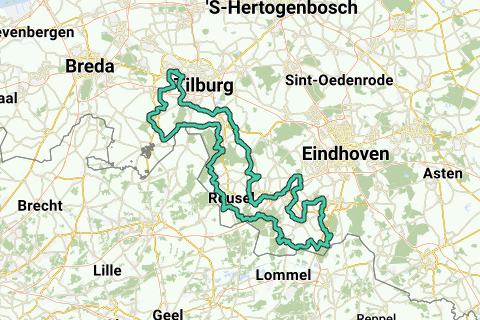 Door bosrijk gebied via Hilvarenbeek naar Reusel vervolgens via Luyksgestel en Bergeijk naar Eersel, Steensel, Knegsel, Duisel. En via Bladel Casteren naar Neetersel. Om vervolgens via Biest houtakker, Goirle en Riel weer naar Tilburg te fietsen.