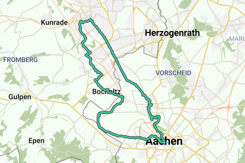 Wandeling van Heerlen via Bocholtz en Lemiers naar Aken. Terug via Laurensberg, Vetschau en Kerkrade-West.