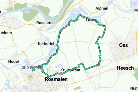 Langs de maas over de dijk naar Lithoijen en door via Geffen, Nuland en Rosmalen terug naar Den Bosch.