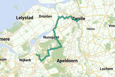 In 87 km over de Veluwe van Putten naar Zwolle.