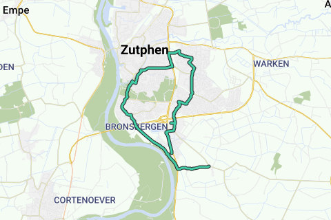 Route van vierakker langs de ijssel naar Zutphen, Warnsveld en weer terug naar vierakker