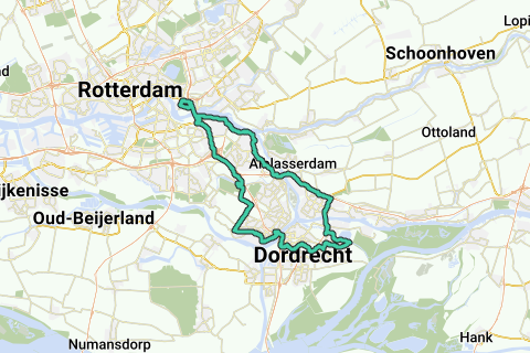 route Dordrecht aAlblasserdam Rotterdam Rijsoord