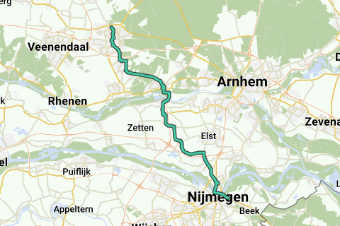 Vanaf Ede kortste weg richting Nijmegen. Daar een deel van route Klim bij Nijmegen Avondrood en dan weer terug naar Ede