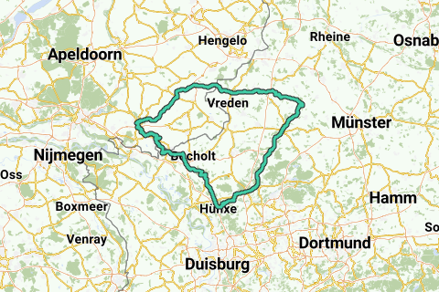 Vanuit Doetinchem naar de kastelen Ahaus, Darfeld, Lembeck en Gartrop. Vervolgens via Schloss Anholt en kasteel Kemnade weer naar Doetinchem.