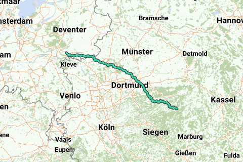 Een route van het verzamelpunt in Zevenaar tot Hotel Winterberg Resort