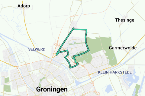 Rondje van 10 km om Beijum heen met aan begin en einde de Kardingerberg.