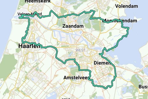 Amsterdam - Ouderkerk - Abcoude - Driemond - Monnickendam - Purmerend - Zaandam - Velsen - Bloemendaal - Haarlem - Halfweg - Amsterdam
