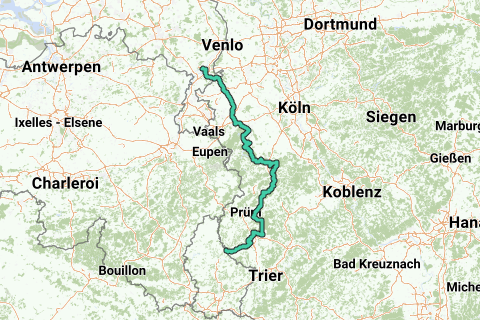 via Nideggen, Heimbach, Birgel, Bitburg, Vianden