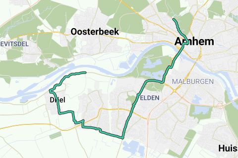 route Arnhem Zuid Drielse Dijk via de twee bruggen.