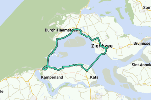 Vanaf Zierikzee, over de brug naar Colijnsplaat, richting Pijlerdam, via Neeltje Jans, Burg-Sluis terug naar Zierikzee.