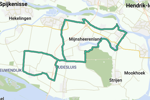 Heen via Heinenoord naar Klaaswaal en Zuid-Beijerland. Terug via Zuidzijde, Klaaswaal, langs de Binnenmaas naar Maasdam en Puttershoek