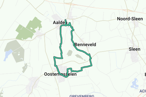 Begin net door Zweeloo aan de Aalder Hooghe. Loop deze weg verder en ga het voetpad aan de linkerkant in. Dit voetpad neemt enkele bochten en komt uit op een breed onverhard pad. Ga hier RA en ga LA bij de verharde weg. Waar de weg uitkomt bij de Bennevelderstraat met naastliggend fietspad gaat u RA. Bij de afslag naar rechts gaat u het onverharde pad in. Dit pad gaat met een grote boog voorbij Benneveld en komt na enkele kilometers uit op de Bennevelderstraat. Hier gaat u RA, Aan het eind gaat u RA over het fietspad. Na enkele meters LA het onverharde pad nemen. De eerste afslag naar rechts nemen. U steekt de weg over en vervolgt het pad in het bos. Aan het eind linksaf en voor het einde rechtsaf. Dit pad gaat na enige tijd over de heide met jeneverbessen. Aan het eind van de heide het pad naar rechts volgen tot u op het verharde fietspad komt. Hier LA richting Oosterhesselen. Meteen aan het begin van de bebouwing LA : Bergakkers. Na de bocht naar rechts LA een bospad inlopen. Het pad naar voren volgen en aan het einde naar rechts. U komt op de weg naar Overcingel. Hier RA : Witte Singel. Deze weg volgen tot het einde en daar RA : Burgemeester De Kockstraat. De weg volgen en links aanhouden bij de afslag. U komt buiten het dorp en slaat rechtsaf een smal weggetje in : Veenakkerweg. Ga de eerste afslag naar rechts,een onverharde weg : Leutenakkerweg. Neem vervolgens de eerste afslag naar links. Ga aan het einde naar rechts en neem de eerste afslag naar links : Bodenpad. Een graspad dat uitkomt op een verharde weg. Ga hier RA en neem vervolgens de eerste afslag LA, een onverhard pad over de es naar Aalden. In Aalden volgt U de weg naar rechts, de Koemarsendrift, en komt uit op de Aalder Hooghe. Hier LA en u komt uit bij het begin.