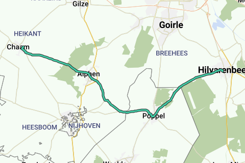 <p><a class="routeYou_embed" href="https://app.routeyou.com/nl-nl/route/view/4716929?utm_source=embed&utm_medium=article&utm_campaign=routeshare&navigation=external" title="Van Chaam naar Hilvarenbeek via Alphen - RouteYou" target="_blank"><img src="https://image.routeyou.com/embed/route/960x670/4716929-nl@2x.png" style="width: 100%; height: auto;" alt="Van Chaam naar Hilvarenbeek via Alphen"></a></p>