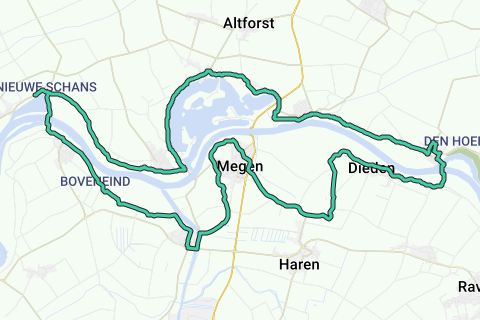 pont over naar Maasbommel vioa noordzijde Hammen naar Appeltern dan terug Den Hoef