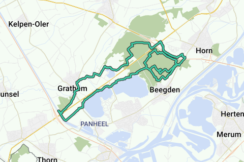 MTB Route met start in Grathem bij Café, Zaal, Restaurant Geraets te Grathem. De eerste halve kilomter is verhard, vervolgens is de route zo goed als volledig onverhard.