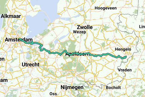 Deze route gaat via knooppunten van Enschede naar Amsterdam