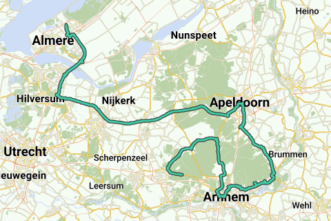 Almere, Apeldoorn, Beekbergen, Eerbeek, Dieren, De Steeg, Rheden, Arnhem, Hoenderloo, Otterlo, Ginkelse Heide.