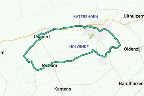 De route start bij de Menkemaborg. Een afwisselende route voert u door zeer open land en langs grote luxe boerderijen en mooie weiden. Soms zijn er lange rechte stukken, dan weer slingerende weggetjes langs dito wateren. Op de route liggen diverse markante punten. U loopt door de dorpen Zandeweer, Doodstil, Rottum, Usquert en Uithuizen.