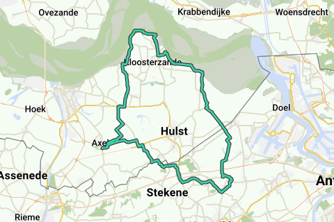 Route van Sint-Gillis-Waas naar Axel naar Perkpolder en terug naar Sint-Gillis-Waas