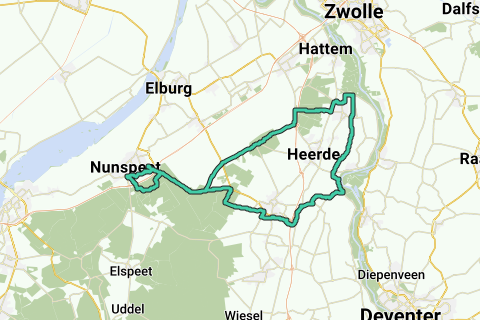 Vertrek transferium Nunspeet, via Zuidweg naar Wapenveld, via geul naar Veessen. Via Oene/Zuuk retour naar Nunspeet via de toeristenweg.
