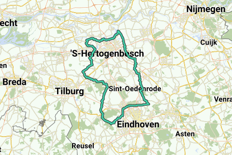 rondje wintelre via son noordelijk naar den bosch boven den bosch langs de maas via vlijmen naar biezenmortel dan weer naar het zuiden terug naar wintelre