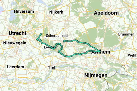 Route vanaf Veenendaal langs de Ginkelse heide richting Arnhem.