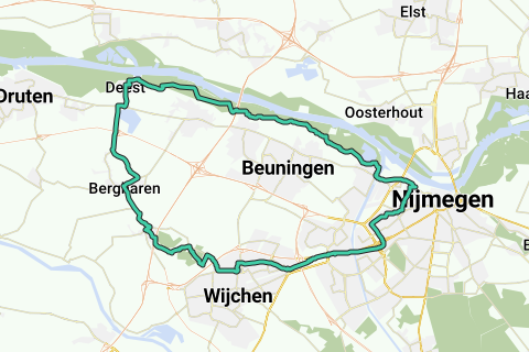 De fietsroute langs de erfenis van de baksteenindustrie in het Land van Maas en Waal gaat door: Hernen, Bergharen, Deest, Winssen, Beuningen, Weurt, Nijmegen, Wijchen, Hernen.
