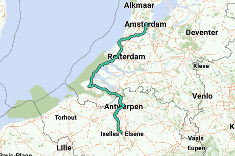 Dit traject brengt je van Amsterdam naar Brussel via Middelburg. Het is een geschikte route om af te leggen met de racefiets.