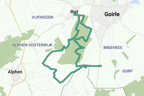 Start- en eindpunt: Dorpsplein Riel (vanuit NS station Tilburg: bus lijn 132, bushalte Dorpsplein Riel).