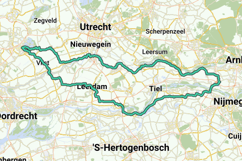 Ligfietstocht langs Lek, Neder-Rijn en Waal.