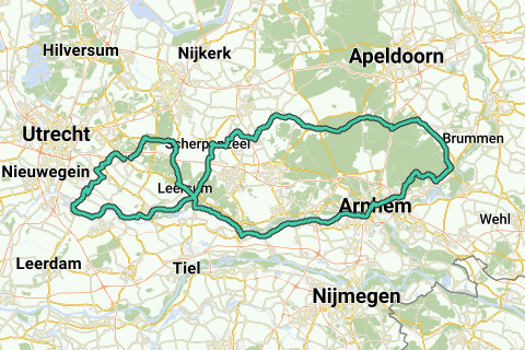 De Route start in Driebergen en gaat snel via Odijk en Schalkwijk bij Tull en het Waal/Molenbuurt de Lekdijk op richting Amerongen. Vanaf Amerongen wordt de route via o.a. Scherpenzeel en Lunteren ingezet richting Nationaal Park Veluwezoom, ook wel bekend als de Posbank.