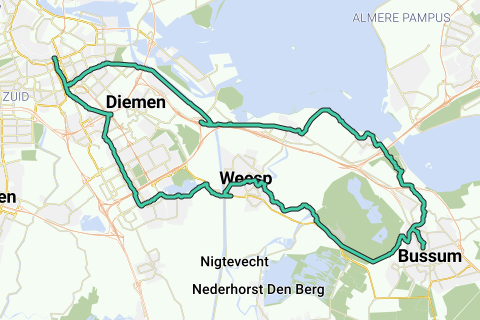 55km loop from Amsterdam, inc.: Muiderslot, Naarden, Bussum, Fort Uitermeer, and Weesp.