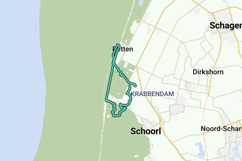 Je kunt de hele wandeling inkorten door niet door te lopen naar Petten, maar bij de bij oude dijk door de polder meteen af te buigen naar Groet. Totaal 15,8 km