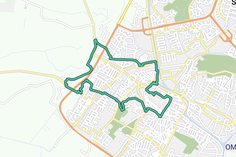 Deze route start in de buurt van de kerk en doet daarna de volgende wandelknooppunten aan: 33 > 32 > 19 > 18 > 13 > 17 > 50 > 15 > 23 > 22 > 21 > 20 > 34 > 33.
