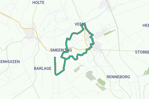 Deze route start in de buurt van de kerk en doet daarna de volgende wandelknooppunten aan: 14 > 76 > 14 > 74 > 75 > 69 > 67 > 64 > 65 > 66 > 29 > 3 > 35 > 63 > 62 > 61 > 60 > 70 > 59 > 51 > 71 > 3 > 14.