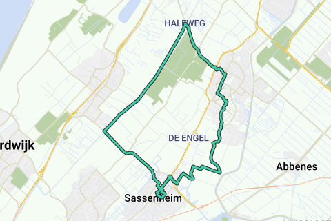 Deze route start in de buurt van de kerk en doet daarna de volgende wandelknooppunten aan: 53 > 54 > 56 > 57 > 87 > 77 > 74 > 68 > 45 > 44 > 43 > 42 > 41 > 39 > 36 > 37 > 38 > 20 > 18 > 15 > 14 > 13 > 12 > 53 > 53.
