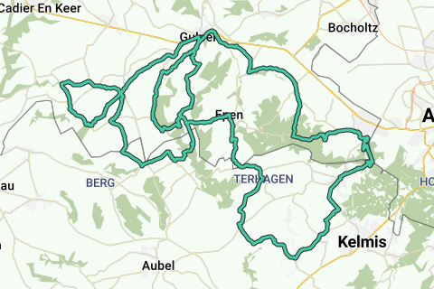 Rondrit Heuvelland 2 vanuit Vijlen. Start/finish: boscafé 't Hijgend Hert, Rugweg, Vijlen. Beklimmingen: Loorberg Slenaken 1.500 m, max. 8,0%. Plankerweg Teuven (B) 1.400 m., max. 8,0%. Kütersteenweg Noorbeek 1.200 m., max. 5,0%. Grensheuvel Noorbeek 600 m., max. 13,0%. Dorpsstraat Mheer 500 m., max. 10,0%. Banholtergrubbe Banholt 1.600 m., max. 7,0%. Koning van Spanje Gulpen 1.700 m., max. 10,0%. Smidsberg Epen 1.500 m., max. 7,0%. Rue de Sippenaken Sippenaeken (B) 2.600 m., max. 8,0%. Rue Les Trois Bornes Gemmenich (B) 2.200 m., max. 6,0%. Camerig oost Vaals 2.800 m., max. 12,0%. Hoogtemeters: 1.051. Koffiestop: Gasthof Euverem, Euverem 30, Gulpen (dagelijks geopend).