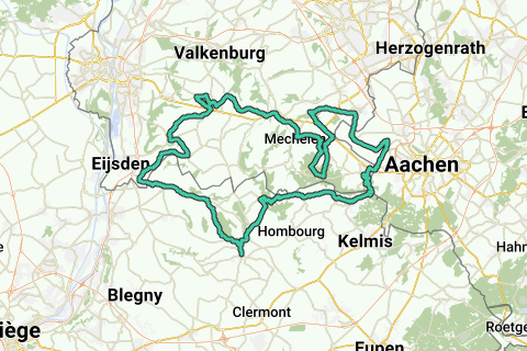 Rondrit Heuvelland 7 vanuit Vijlen. Start/finish: boscafé 't Hijgend Hert, Rugweg, Vijlen. Beklimmingen: Leunweg Vijlen 500 m., max. 10,0%. Ingbergrachtweg Gulpen 2.300 m., max. 7,0%. Trichterweg Margraten 1.700 m., max. 5,0%. Duivenstraat Mheer 1.400 m., max. 6,0%. Magis St. Pieters-Voeren (B) 2.900 m., max. 7,0%. Côte de Hagelstein Aubel (B) 1.100 m., max. 6,0%. Kasteelstraat Teuven (B) 1.200 m., max. 10,0%. Rue Les Trois Bornes Gemmenich (B) 2.200 m., max. 6,0%. Röhrbergweg Seffent (D) 600 m., max. 15,0%. Mamelisserweg/ Vijlenberg/Rugweg Vijlen 3.200 m., max. 8.0%. Hoogtemeters: 1.191. Koffiestop: Le Berry, Palce Antoine Ernst 22, Aubel (B) (gehele week geopend).