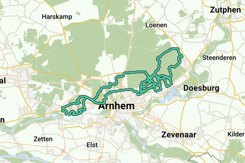 Zes maal een klim (en afdaling) over de Posbank en omgeving waarbij nergens dezelfde weg in dezelfde richting gefietst wordt. Ongeveer 1000 hoogtemeters.