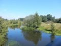 Fietsen in een rustiek landschap met bolle essen, glooiende natuurgebieden en een kronkelend riviertje tussen weelderige graslanden en bloeiende akkers.
