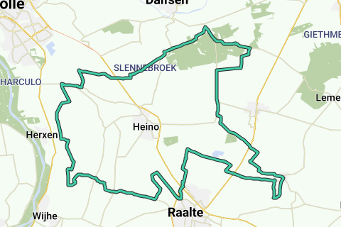 De route brengt jou langs de mooiste wegen langs Rohda Raalte. Minimale uitstoot voor wie het openbaar vervoer combineert met recreatief fietsen. De fietsroute start op de parking. Deze route kan je combineren met het openbaar vervoer. (treinstation Stopplaats Laag Zuthem). Een leuke pauze tijdens deze route is een bezoek aan het museum (Dijkman Klompen-Atelier).