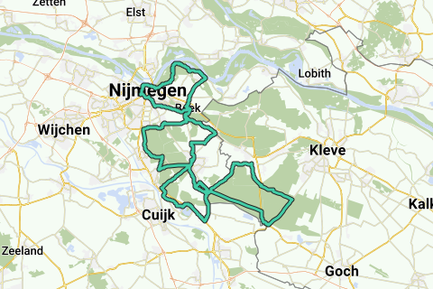 route met alle hoogtepunten uit de omgeving Nijmegen, incl. ooijpolder, randwijckweg, reichswald, zevenheuvelenweg, duivelsberg en holleweg
