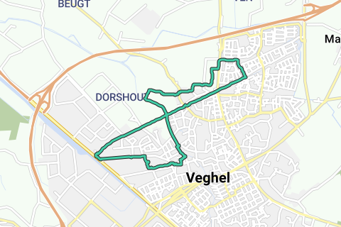 Na het verlaten van de Noordkade lopen we langs de N.C.B. laan richting de Zuid-Willemsvaart waar we afbuigen naar het spoortraject van het Duits Lijntje. Wat nu volgt is een bijna 4 km lange wandeling over het spoor van het Duits Lijntje. We zien overgangen, wissels, objecten zoals de “verrekijker”, de brug over de Aa, het rangeerterrein, station Veghel, een omgebouwd wachtershuisje en een stootblok. Onderweg passeren we ook de oude NS locomotief met nummer 252 en enkele wagons. Sinds Februari 2021 is nabij het rangeerterrein ook de oude brug over de zuid-Willemsvaart te vinden.