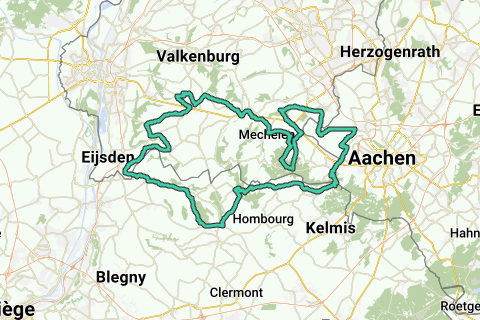 Rondrit Heuvelland 47 vanuit Vijlen. Start/ finish: boscafé 't Hijgend Hert, Rugweg, Vijlen. Beklimmingen: Kruisberg zuidoost Nijswiller 1.000 m., max. 12,0%. Kerkstraat/ Viergrenzenweg Vaals 3.000 m., max. 8,0%. Dorpsstraat/Kultjen Remersdaal (B) 2.400 m., max. 7,0%. Heiweg Mesch 1.600 m., max. 7,0%. Rondelenstraat Mheer 1.200 m., max. 8,0%. Hilleshagerweg Mechelen/Vijlen 2.400 m., max. 6,0%. Pannisberg Vijlen 3.600 m., max. 7,0%. Hoogtemeters: 1.164. Koffiestop: brasserie Der Pley, Pley 27, 's-Gravenvoeren (B) (di gesloten).