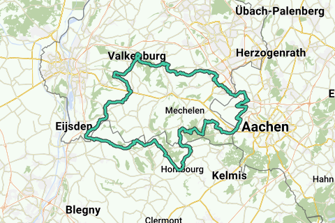 Rondrit Heruvelland 55 vanuit Vijlen. Start/ finish: boscafé 't Hijgend Hert, Rugweg, Vijlen. Beklimmingen: Smidsberg Epen 1.500 m., max. 7,0%. Rue de Sippenaeken Sippenaeken (B) 2.600 m., max. 8,0%. Plankerweg Teuven (B) 1.400 m., max. 8,0%. Heiweg Mesch 1.600 m., max. 7,0%. Holleweg Schin op Geul 700 m., max. 9,0%. Schaapdries (deels) Schin op Geul 1.100 m., max. 8,0%. Oude Elkenraderweg Elkenrade 1.600 m., max. 10,0%. Vetschauerberg Vetschau (D) 1.500 m., max. 7,0%. Harles Vijlen 700 m., max. 9,0%. Rugweg Vijlen 1.200 m., max. 8,0%. Hoogtemeters: 1.048. Koffiestop: Fixed Gear Coffee, Daalhemerweg 4, Valkenburg (ma/di gesloten).