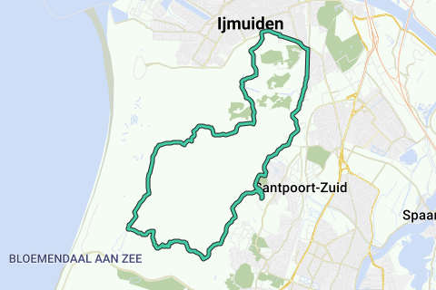 Verharde loopronde. Heenweg langs de duinrand in zuidelijke richting. Door de duinen terug naar IJmuiden.