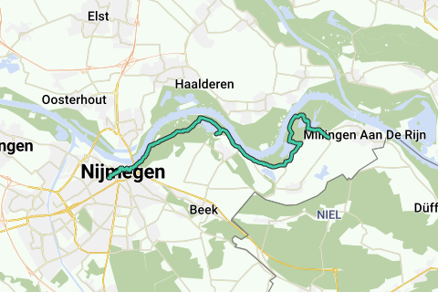 Nijmegen - Kekerdom via Ooijpolder en Millingerwaard - kort. - Van station Nijmegen naar bushalte Weverstraat in kekerdom, 19,4 km