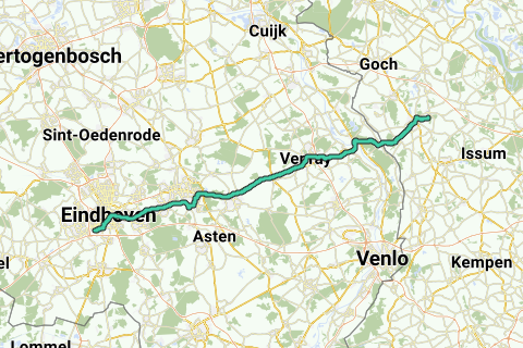 De eerste dag gaat langs het Eindhovens kanaal richting Helmond. Let vooral op de begroeiing op de oevers, waar unieke plantensoorten voorkomen. Vanaf Helmond tot aan Venray volgt men de N270. Dat is minder mooi. Daarna gaat de track over de maas richting Duitsland. Je passeert het Pretpark Irrland.